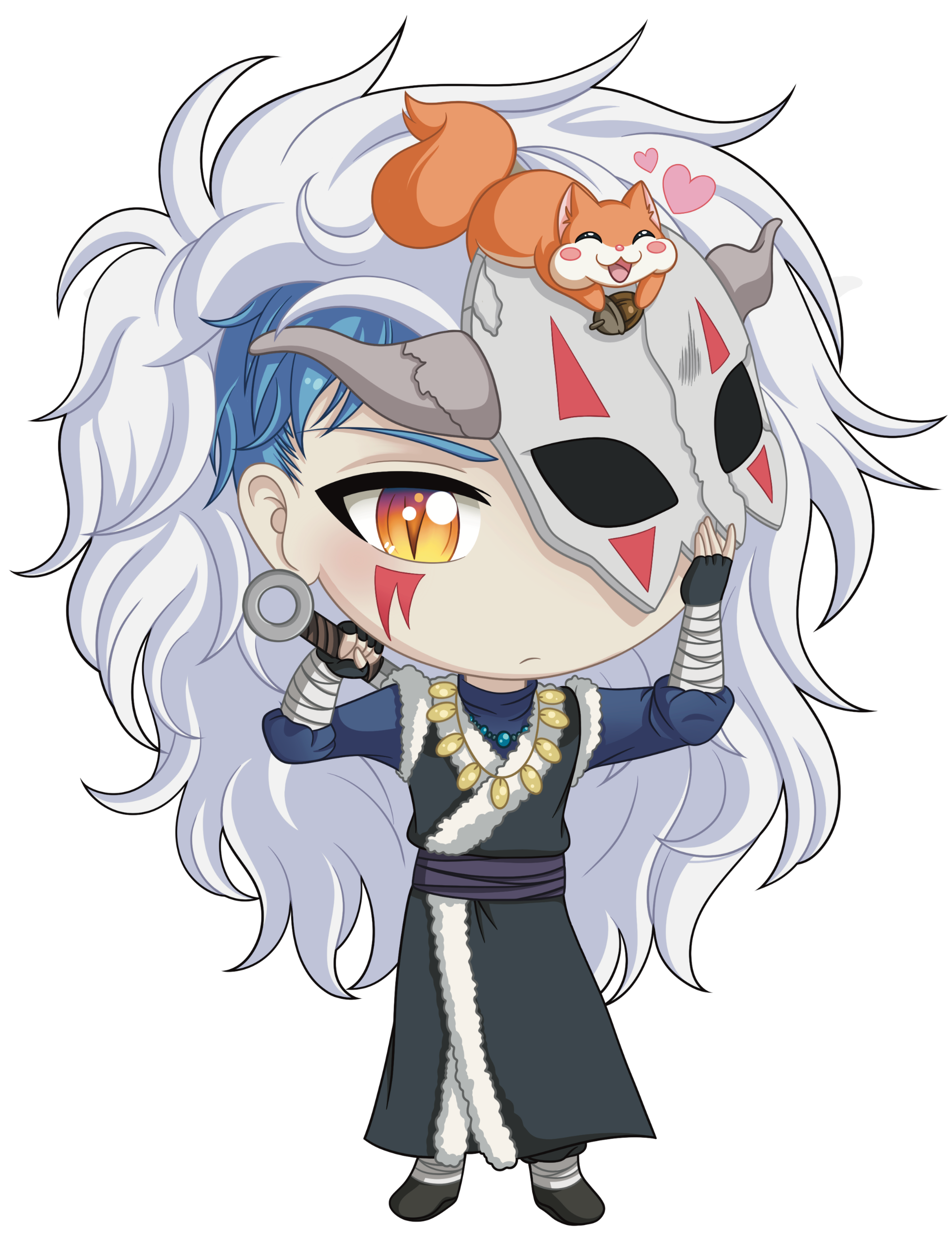 ♡Details: | Important information you want me to know about the character(s). (For example, if OC wears her mask her demon horns won’t be visible. No mask, her horns will be on her forehead.) |